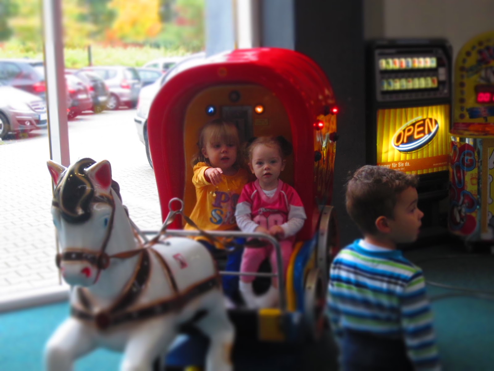 Alessandra and Sophia Enjoying the "Classic Car Carousel" in the Leipzig Hauptbahnhof